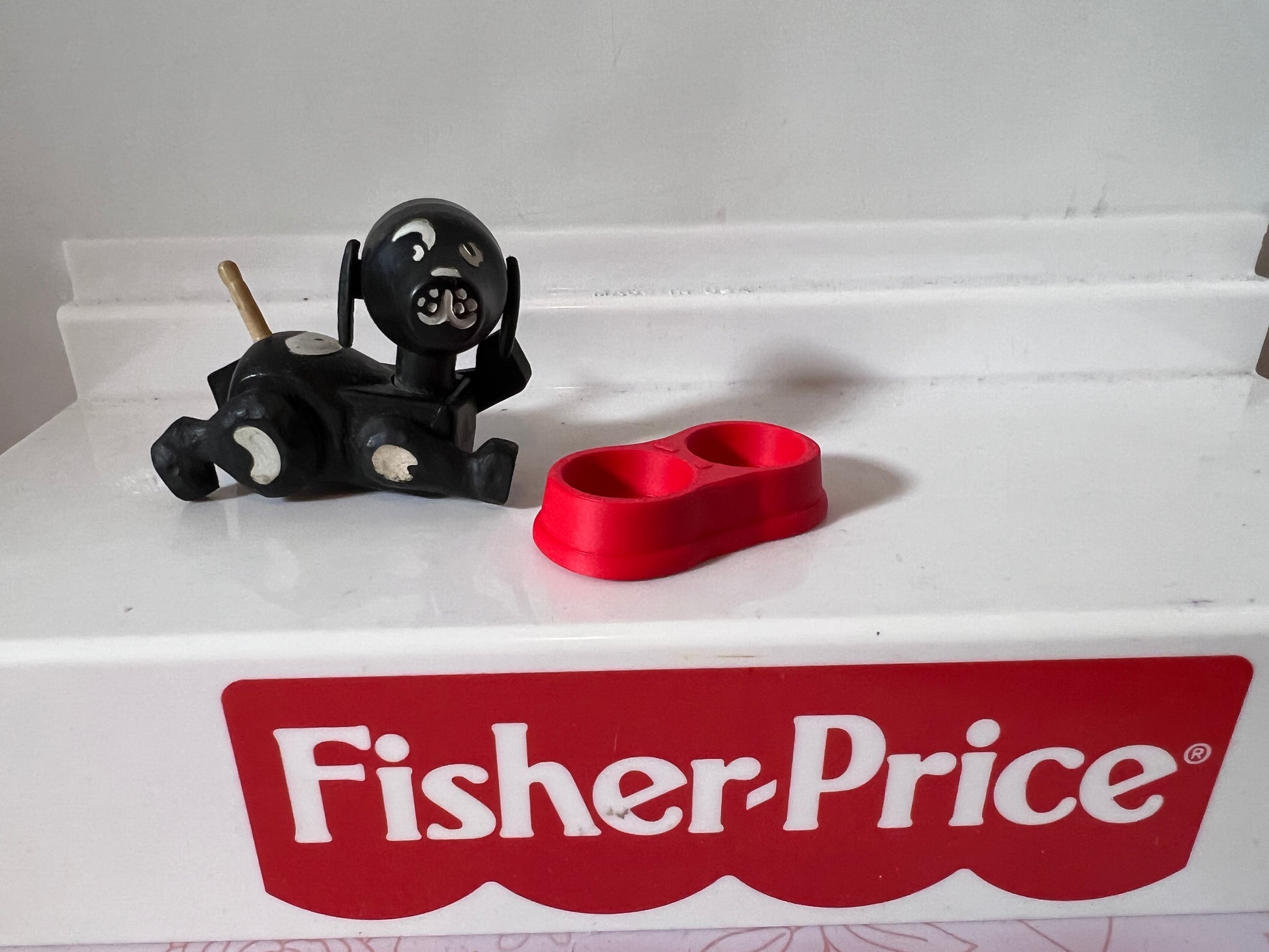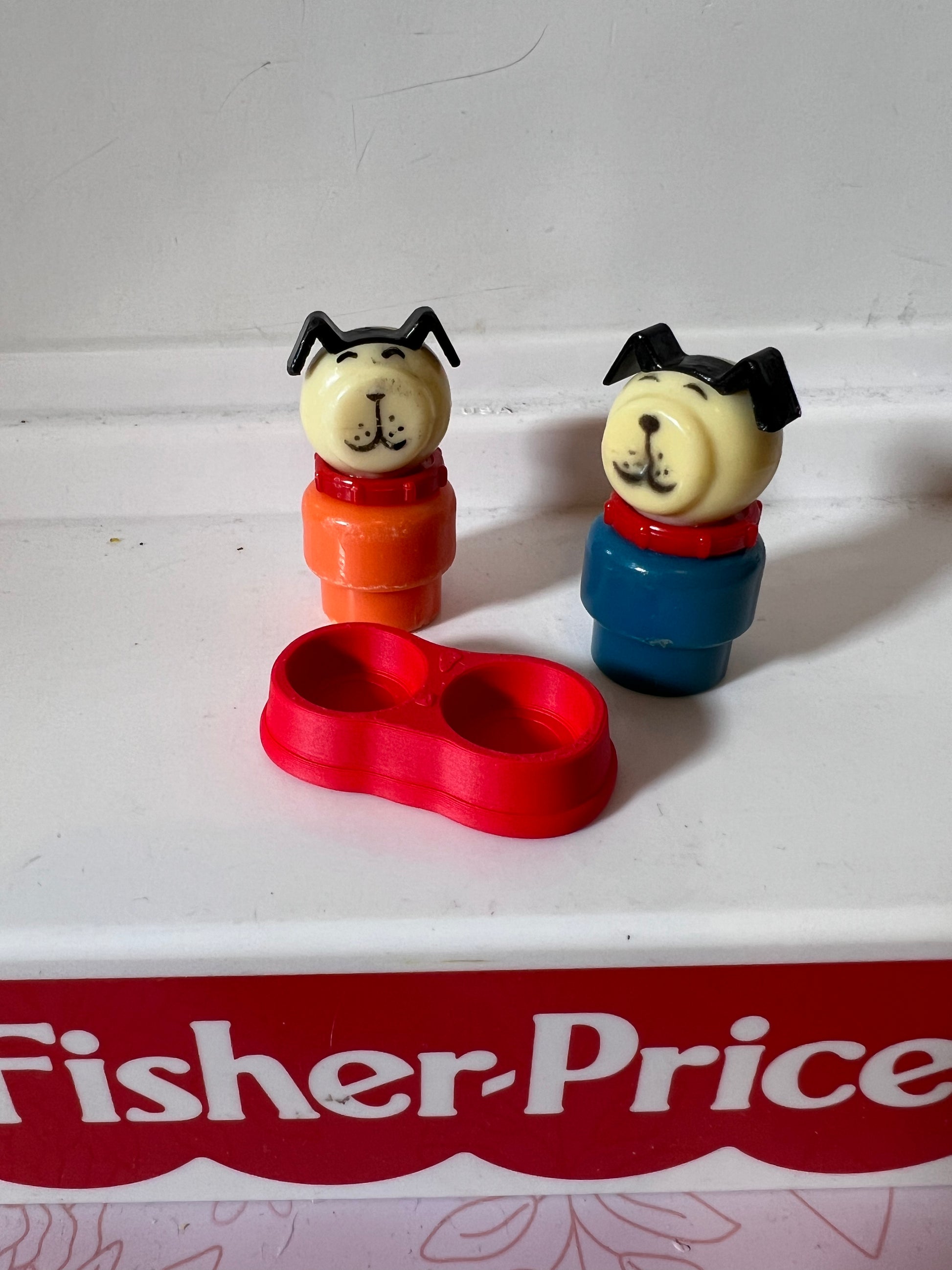 Bring a touch of vintage playtime charm to your collection with this adorable miniature dog bowl, perfectly scaled to fit Fisher-Price Little People pets like Lucky or any of your custom furry friends!