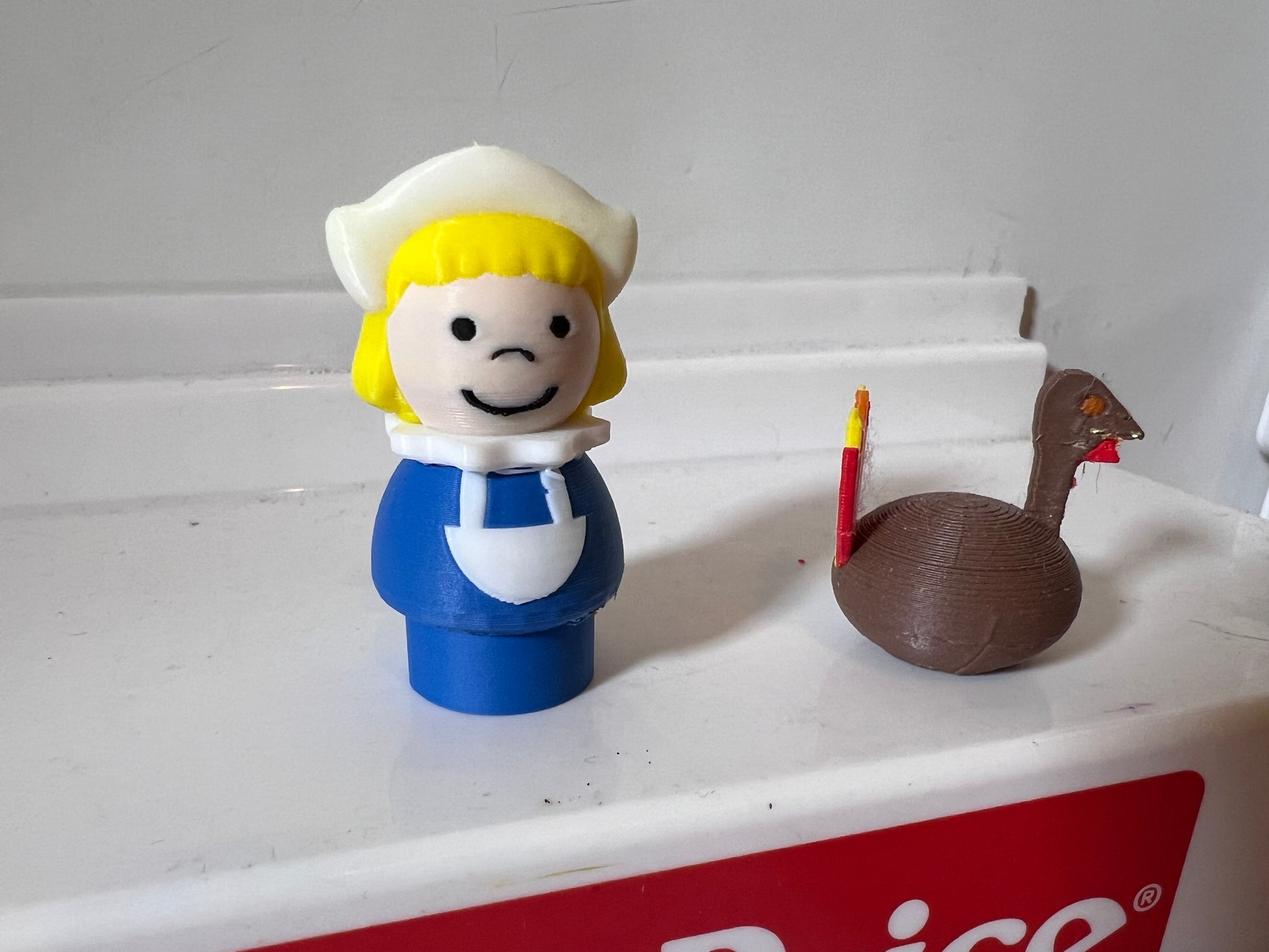 Celebrate the season of gratitude with this charming Thanksgiving Turkey custom figure! Designed in classic Fisher-Price Little People scale, she brings festive nostalgia and autumn warmth to your collection.
